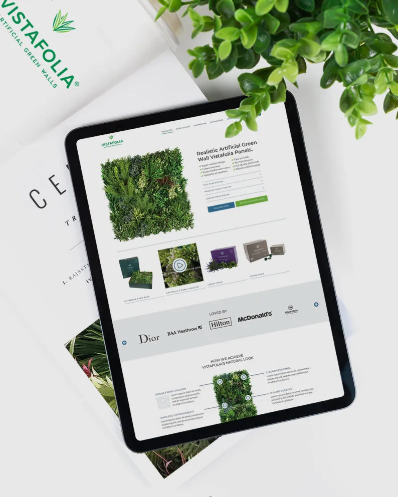 Vistafolia® offers complete end-to-end and uplifting artificial green wall installations for residential and large-scale commercial clients. MRS created the new website to support their continued expansion in the United States and Europe.